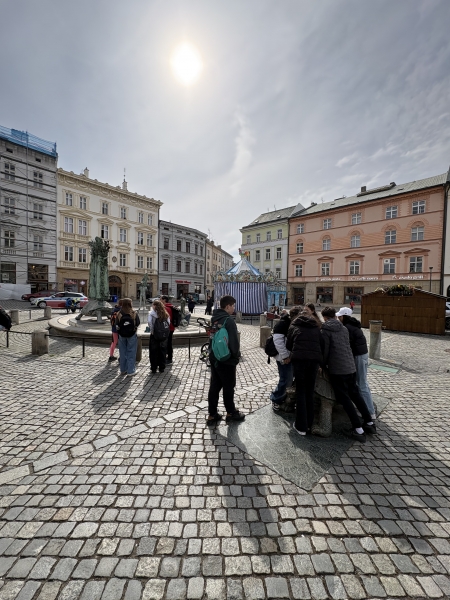 Po úvodním programu jsme se vydali na celodenní výlet do Olomouce. Naši žáci se ujali role průvodců a provedli rumunské kamarády po nejvýznamnějších památkách města. Každé místo dokázali poutavě představit, vysvětlit jeho historii i zajímavosti, a to vše v anglickém jazyce, což bylo obdivuhodné.