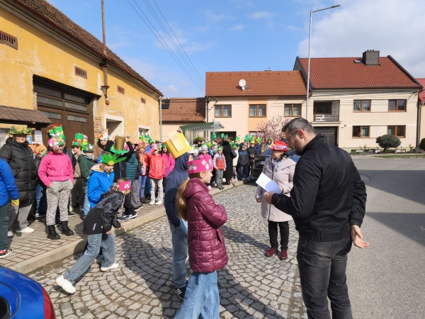 V den průvodu jsme se společně vydali na procházku vesnicí. Barevný zástup rozesmátých dětí v nápaditých kloboucích přilákal pozornost kolemjdoucích, kteří nás odměňovali úsměvy i milými slovy. Celá akce se nesla v radostné atmosféře, která krásně podtrhla příchod jara i blížící se velikonoční svátky.