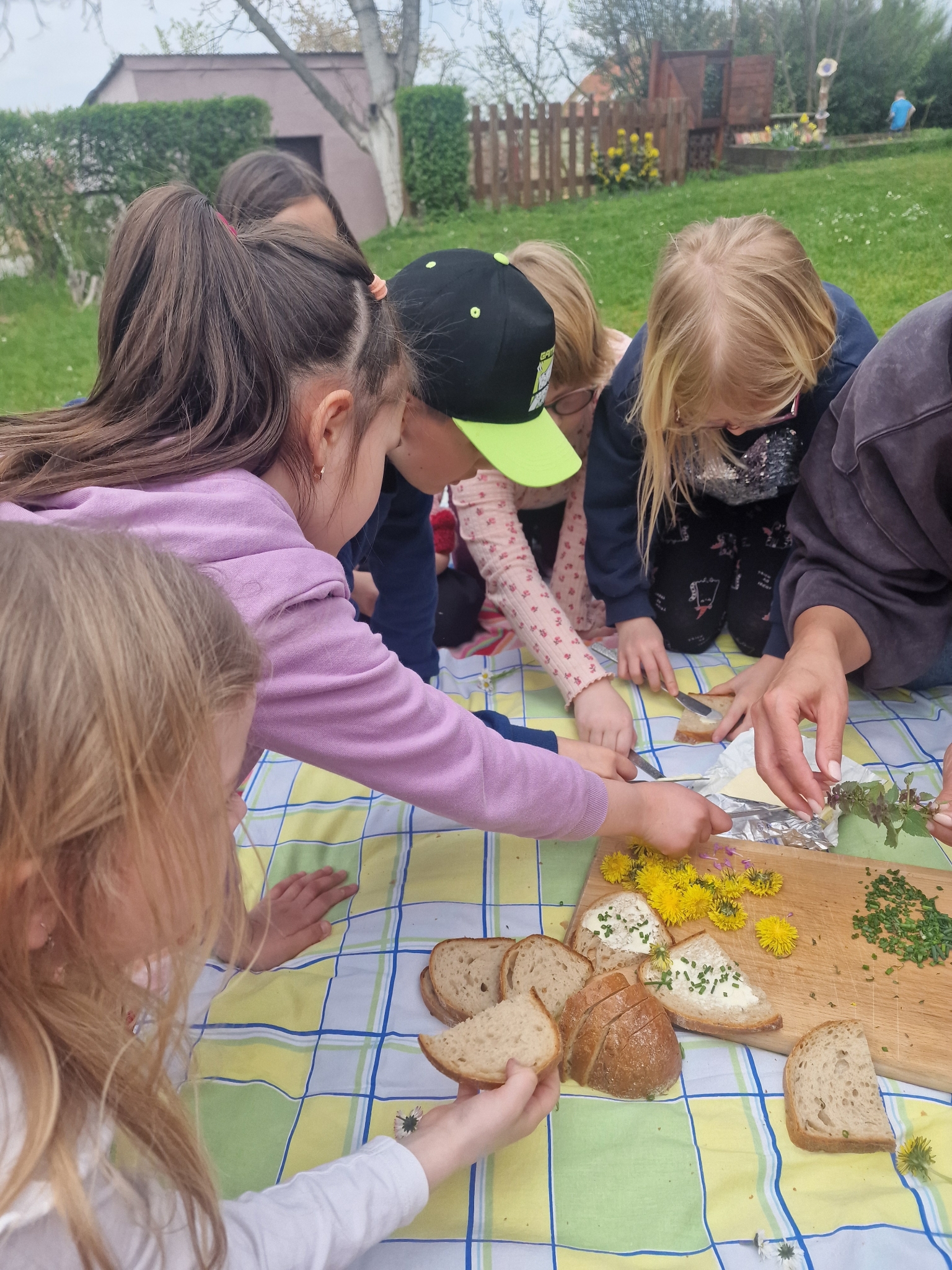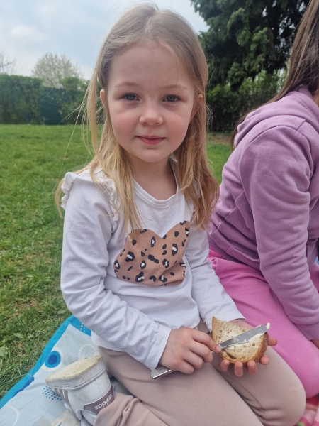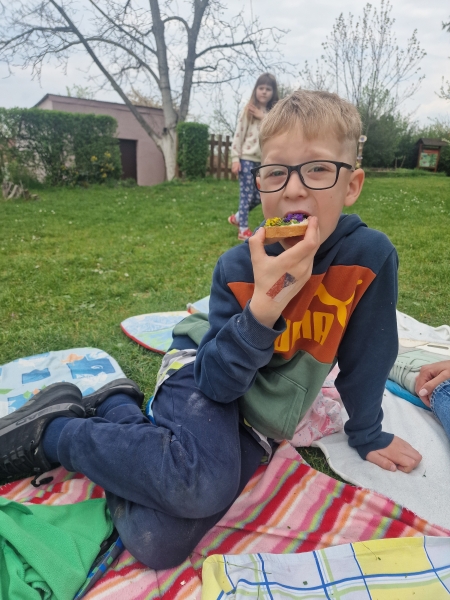 Odměnou nám byl první jarní piknik :-) Při kterém jsme se naučili rozpoznávat jedlé jarní bylinky. Stačil chleba s máslem, čerstvě natrhané bylinky a voňavý, zdravý piknik byl na světě:-)