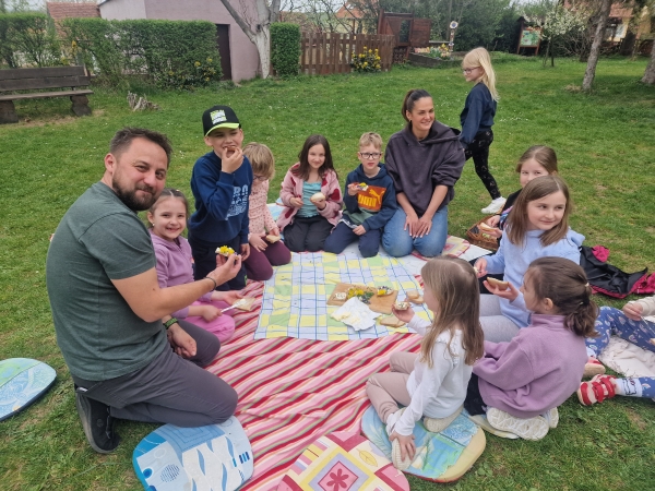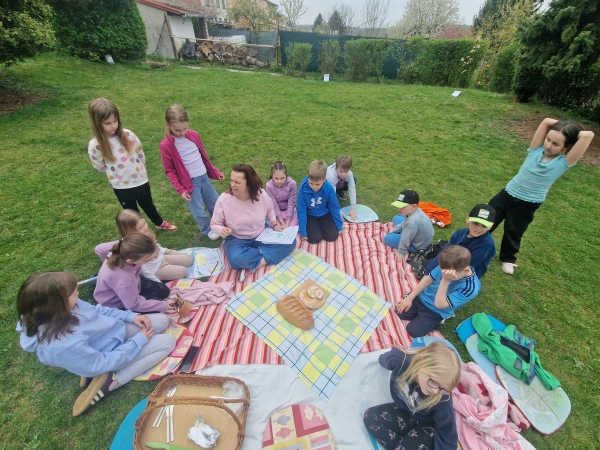 S příchodem jarních dnů a slunečného počasí jsme neváhali ani chvilku a vyrazili na zahradu, která se proměnila v místo plné objevování, radosti i odpočinku :-) Děti si nejprve prošly naučnou stezku ke Dni Země, kde si hravou formou připomněly, jak důležité je chránit naši planetu a pečovat o životní prostředí. Poté jsme se společně pustili do úklidu a úpravy školního záhonu, aby byl opět krásným a příjemným místem pro všechny :-)