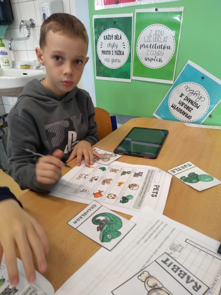 Procvičili jsme si i angličtinu, zopakovali si anglické názvy některých domácích mazlíčků a učili jsme se tato slova správně anglicky psát i vyslovovat.