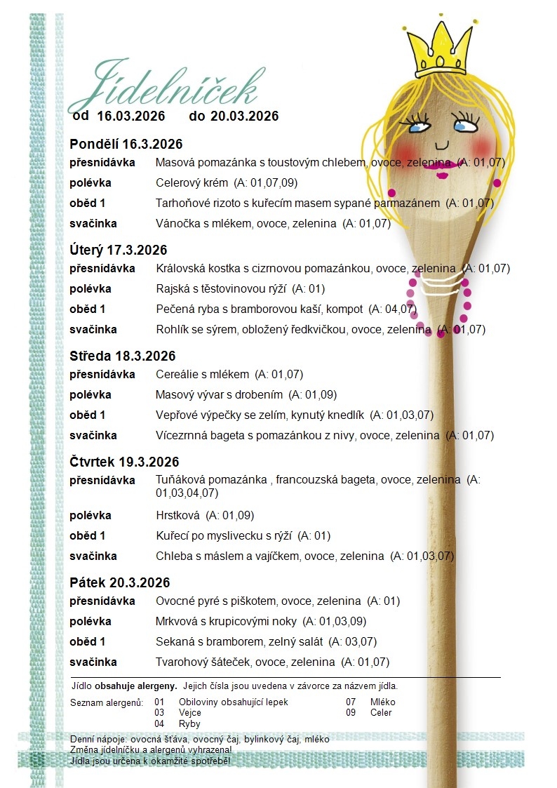 Jídelní lístek MŠ