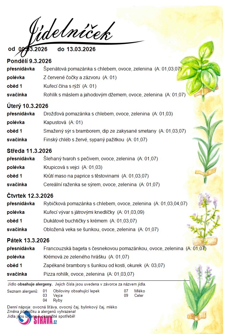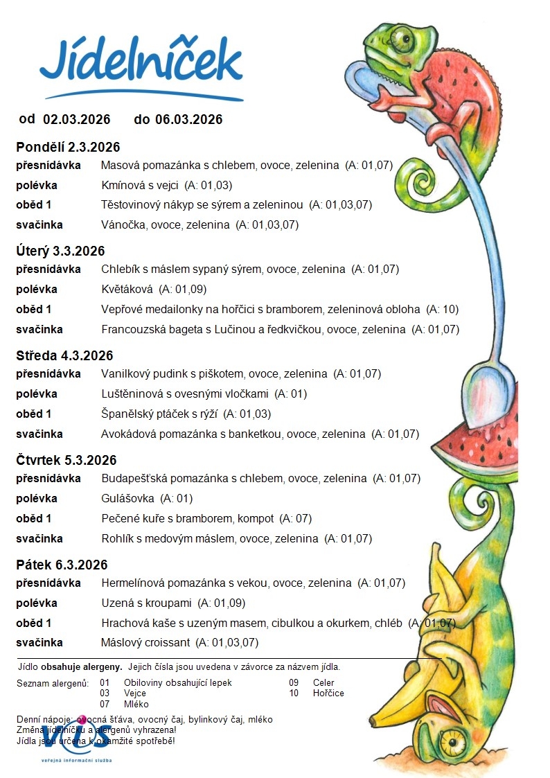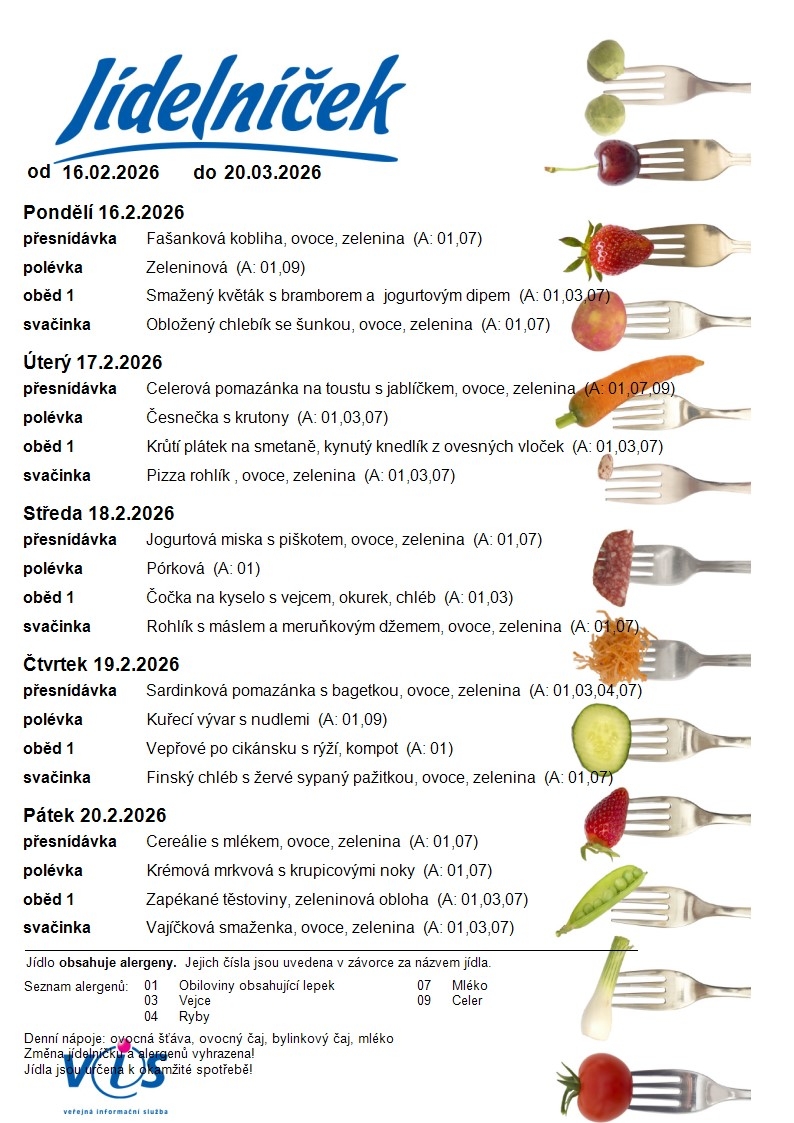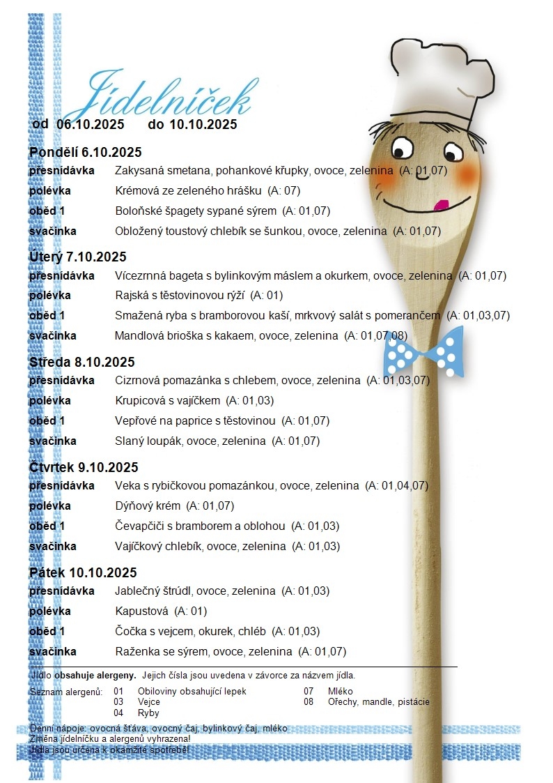 Jídelní lístek MŠ