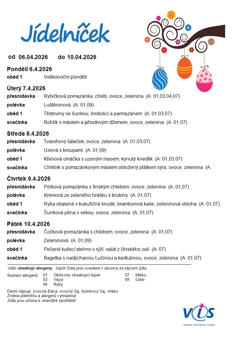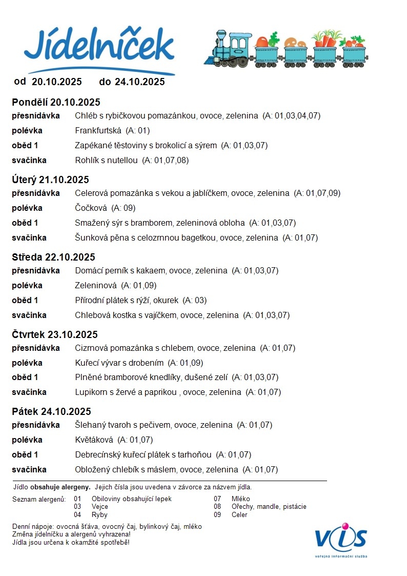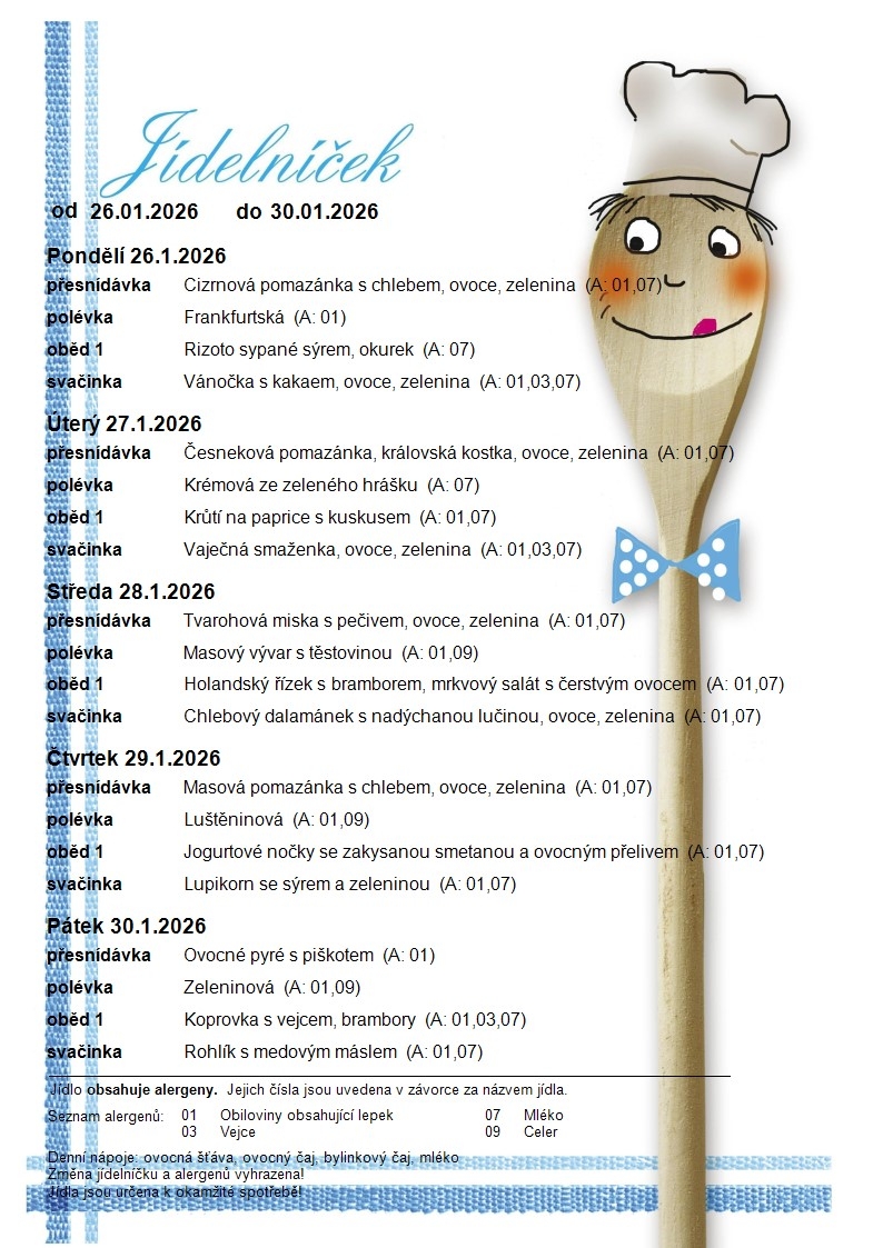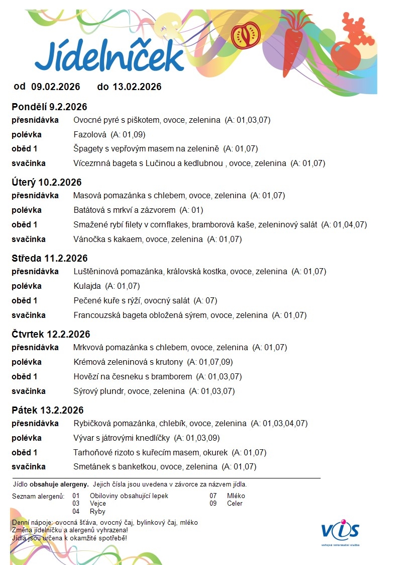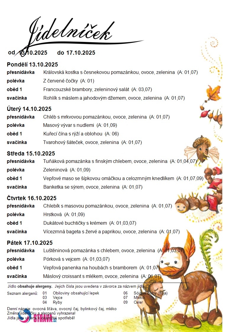 Jídelní lístek MŠ