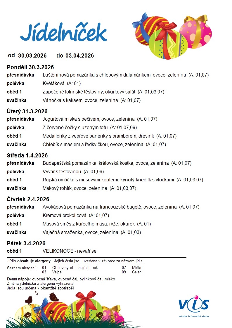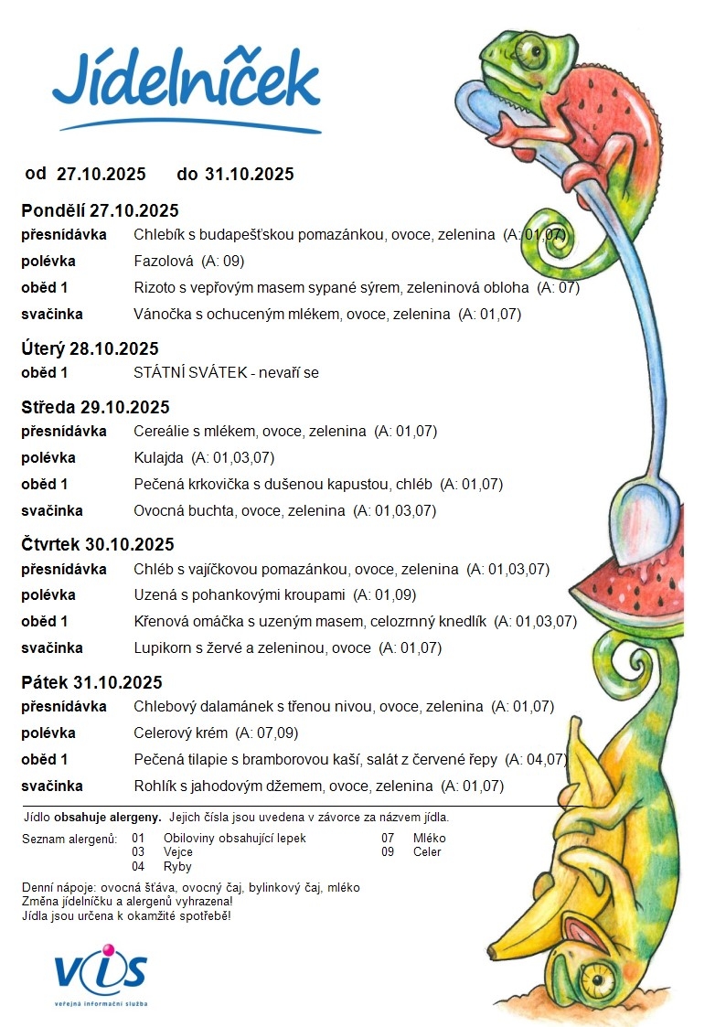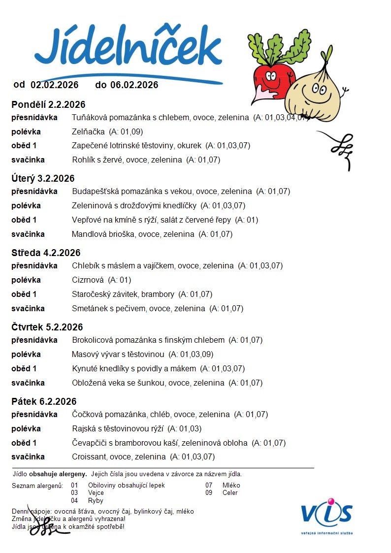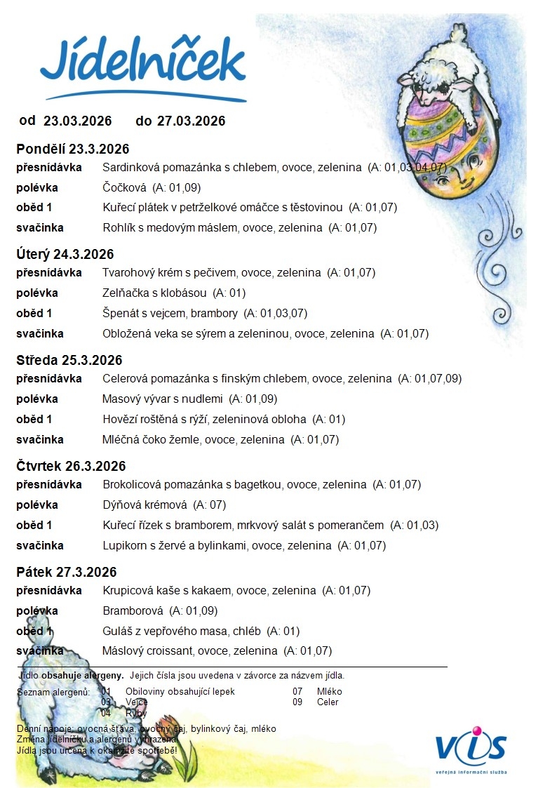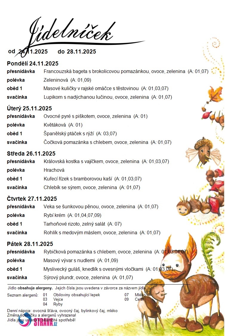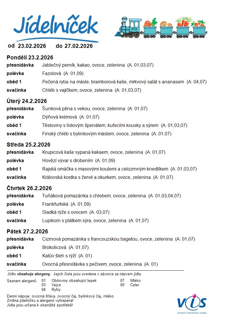 Jídelní lístek ZŠ